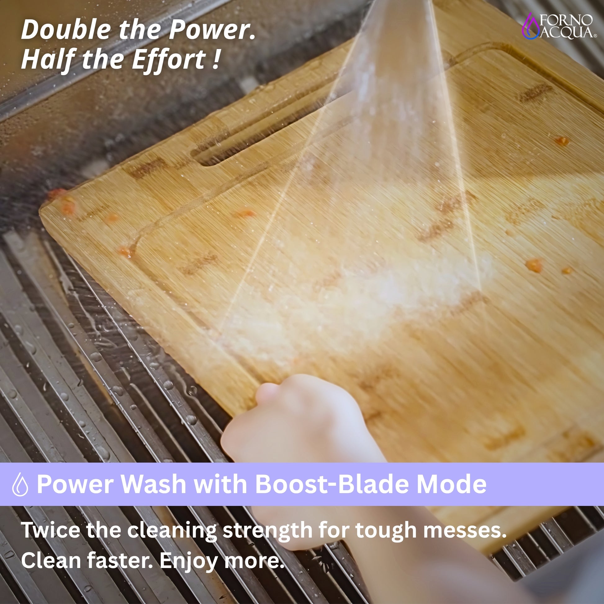 * 4-Function Stainless Steel Pull Down Pivoting Waterfall Faucet combines wide Waterfall Rinse with Power Wash