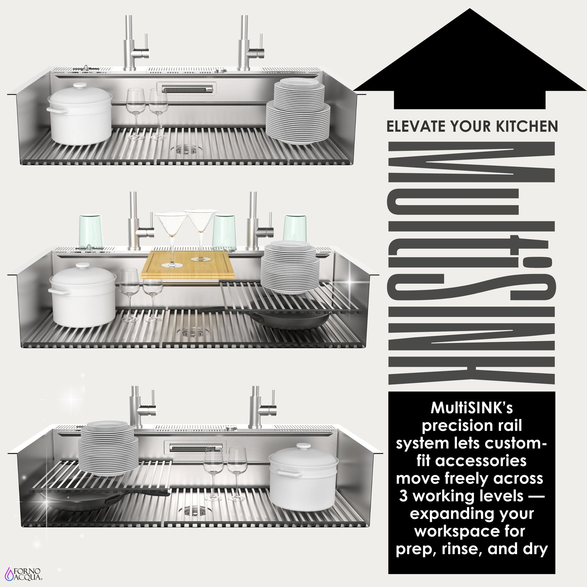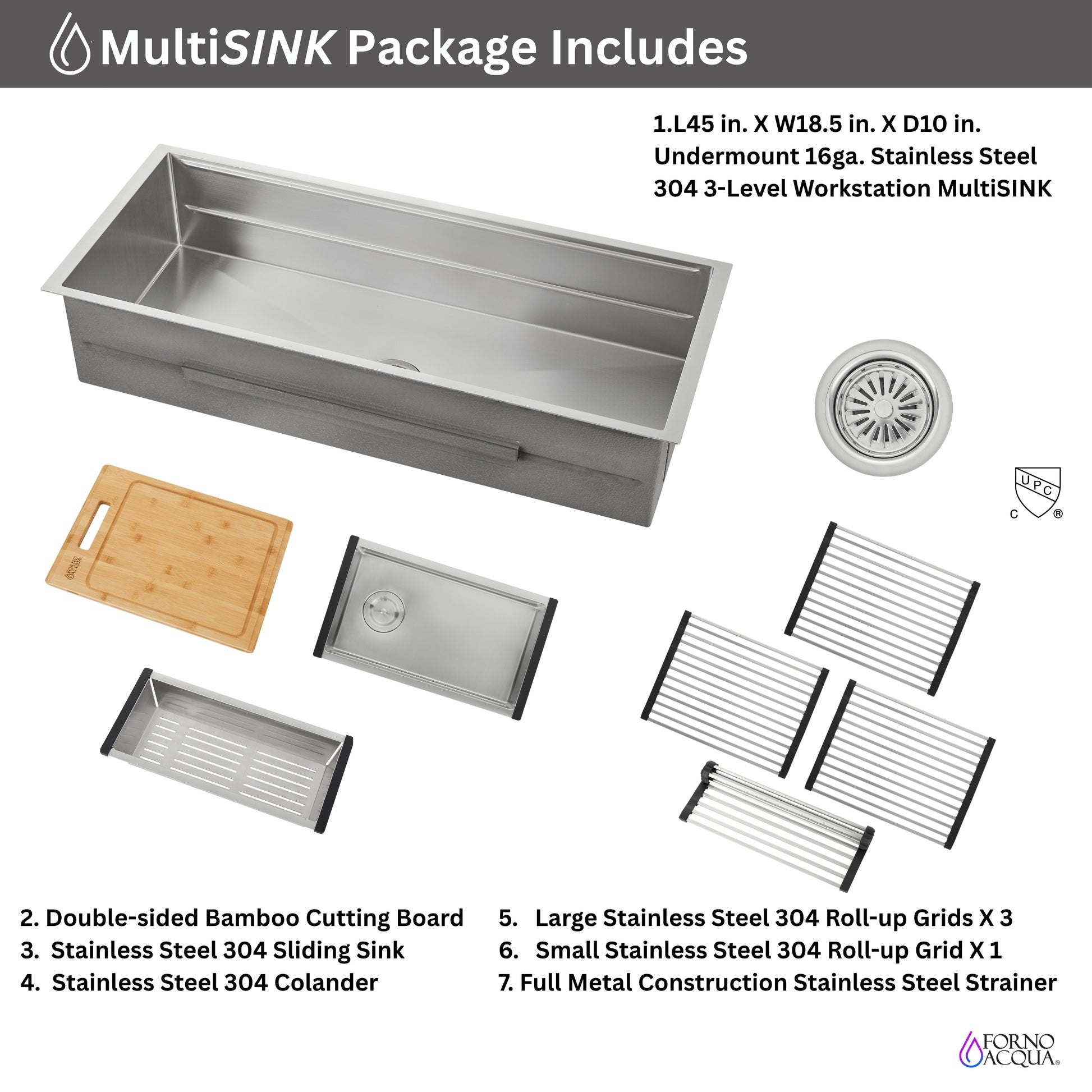 FORNO ACQUA 45 in. Undermount 3-Level Workstation MultiSINK with Custom-Fit Accessories