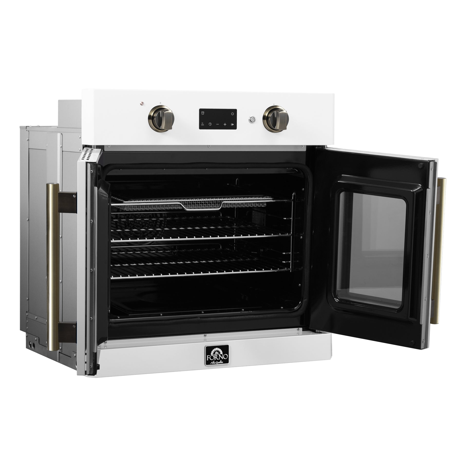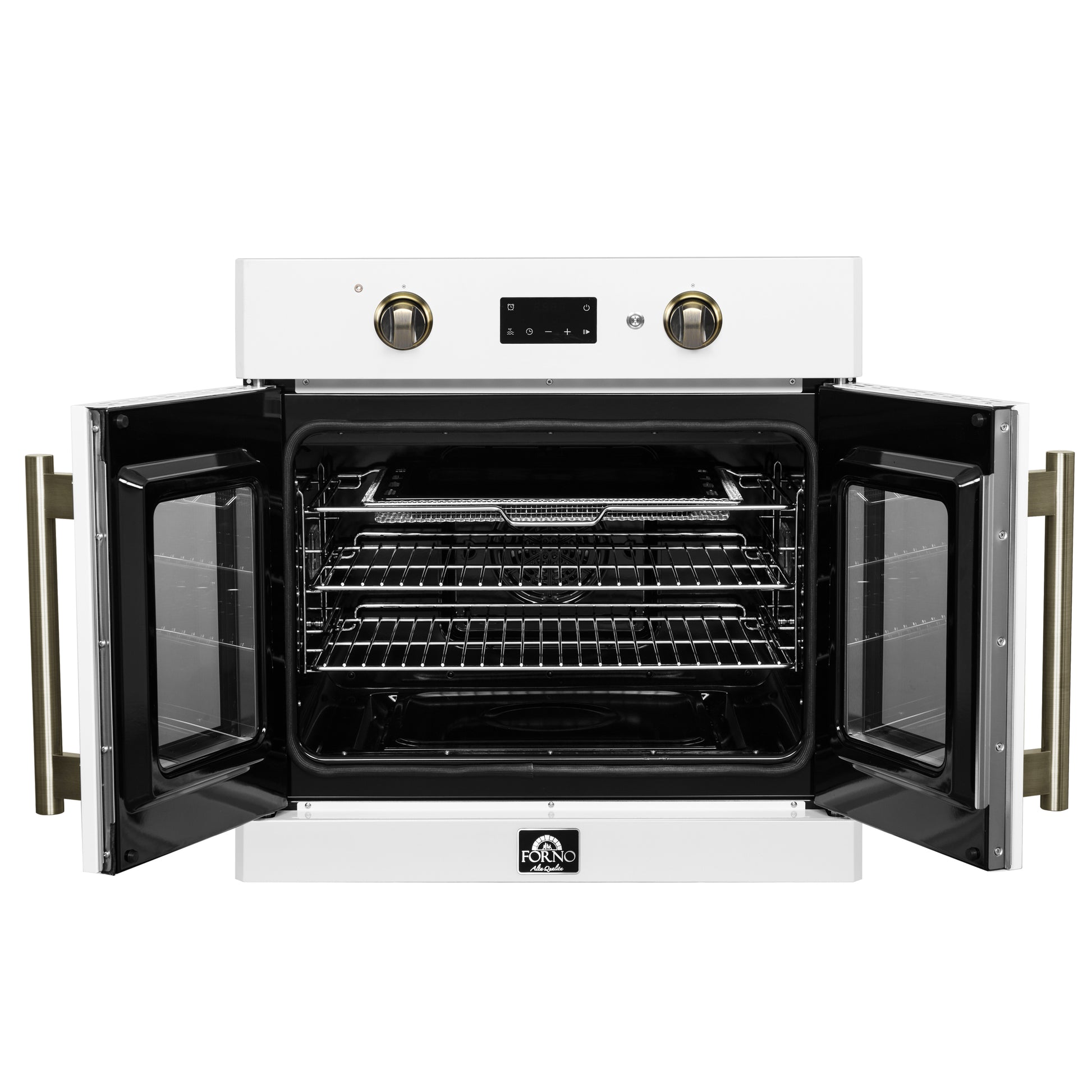 Forno Asti 30-Inch French Door Electric Wall Oven in White & Antique Brass, 3.68 cu. ft. True Convection, 3,600W, Air Fry, Sous Vide, Self-Clean