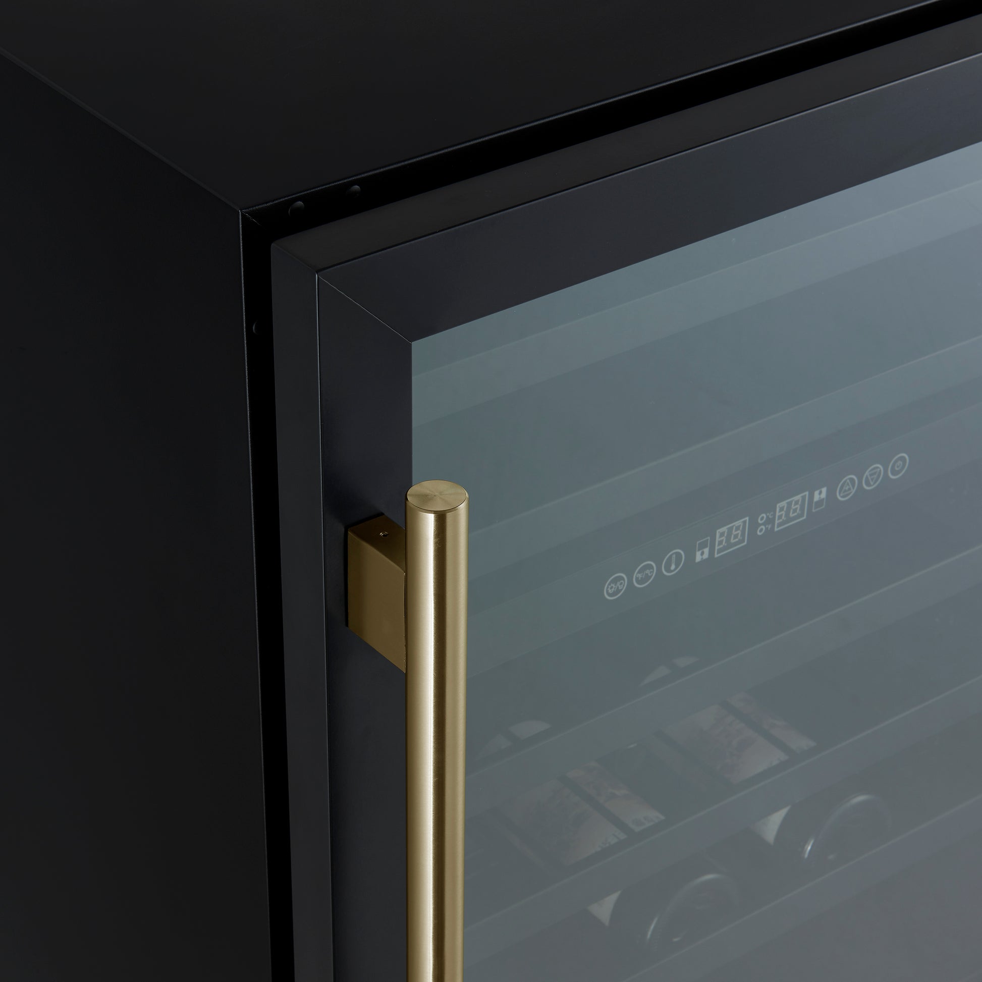 Forno Bacchino 24 Inch Wine Cooler, Black with Antique Brass Handles, with LED Lighting, Triple Glass Door, 51 Bottle Capacity, Built-In or Freestanding
