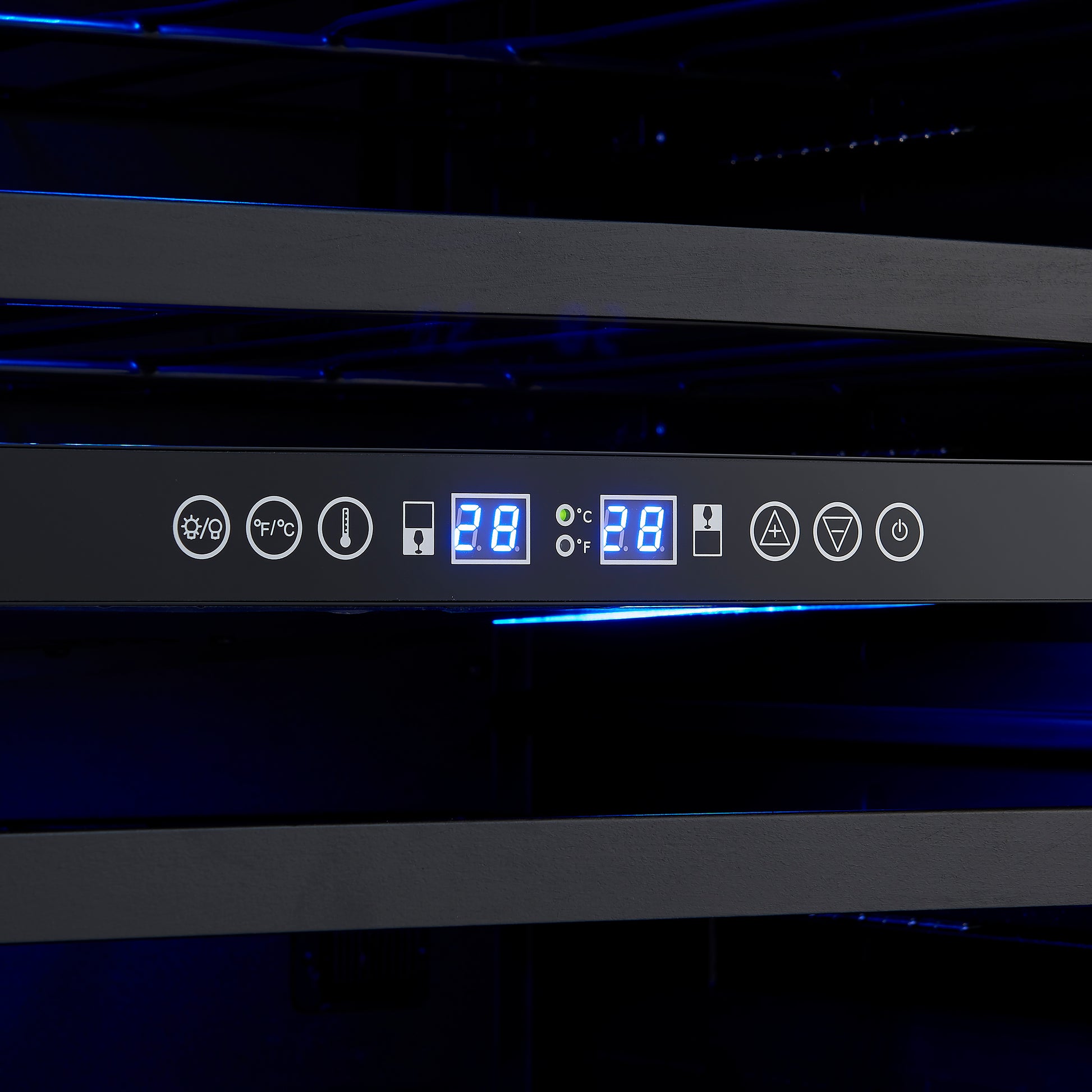 * Dual Temperature Zones (40°F–65°F): Independent zones create the perfect environment for preserving both red and white wines.