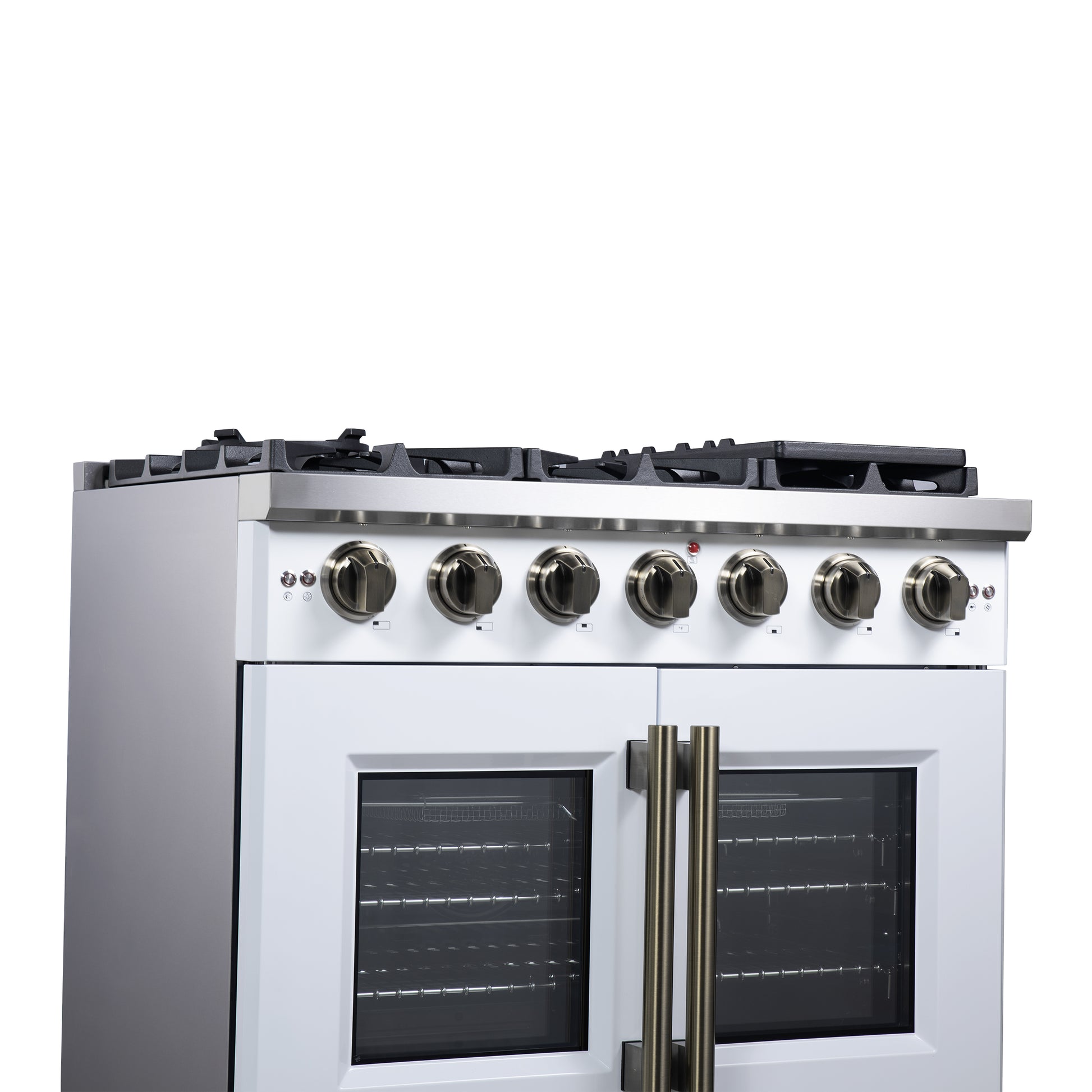 Forno Capriasca 36-Inch White Freestanding French Door Gas Range, 6 Burners, Convection Oven, Energy Efficient