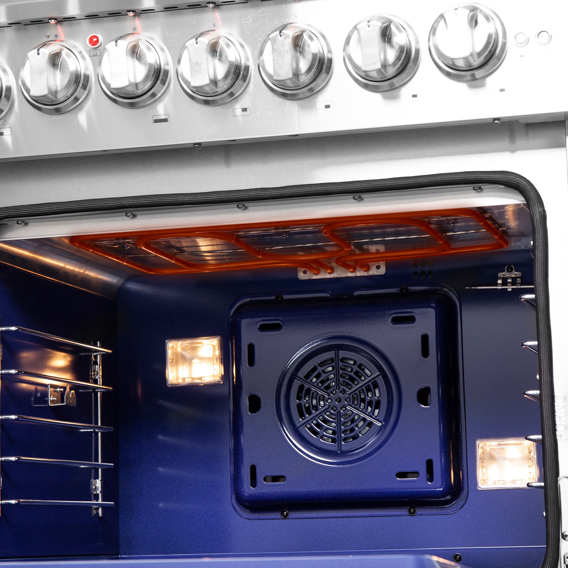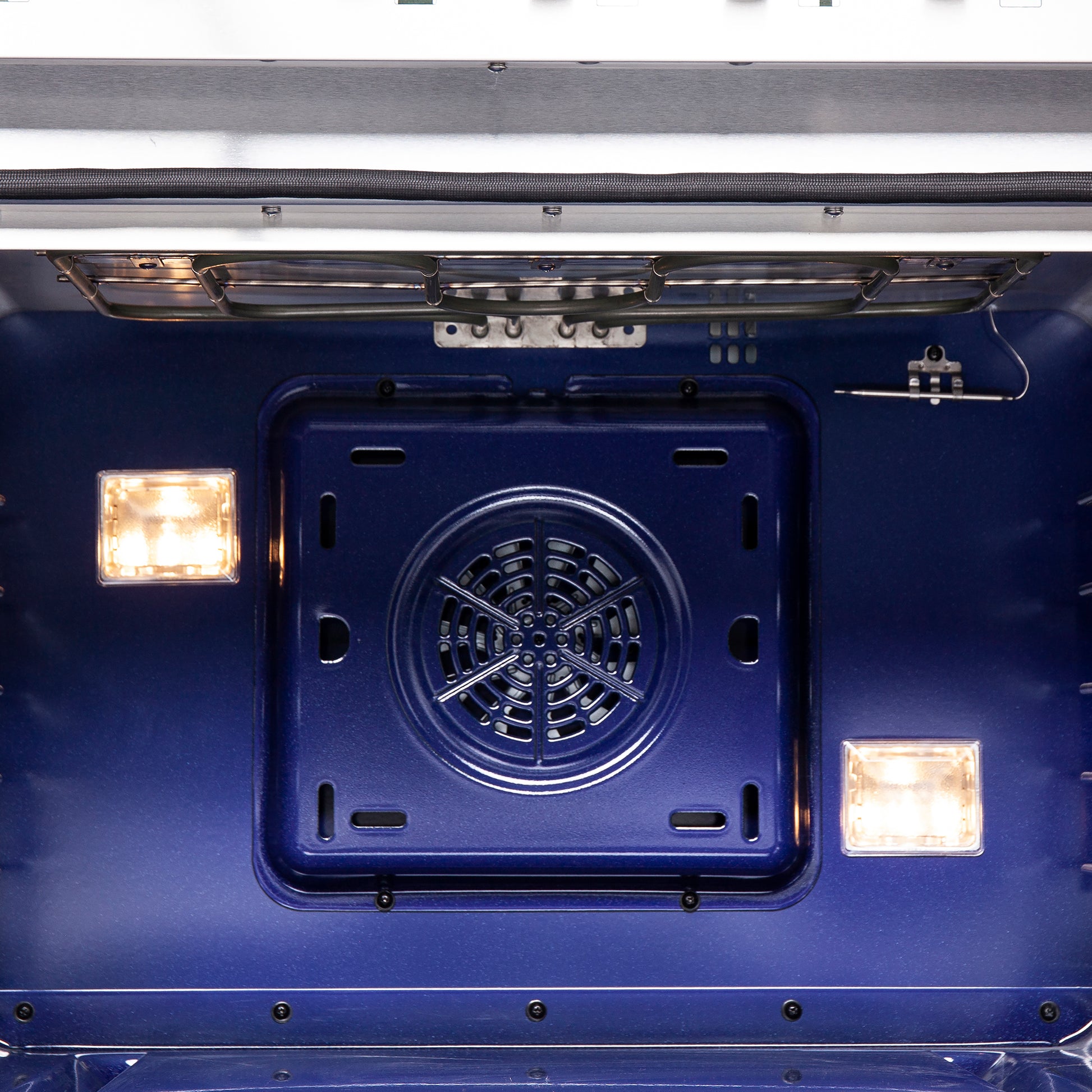 * 4.32 cu. Ft. True convection fan oven with 6,300 W total broil and bake output.