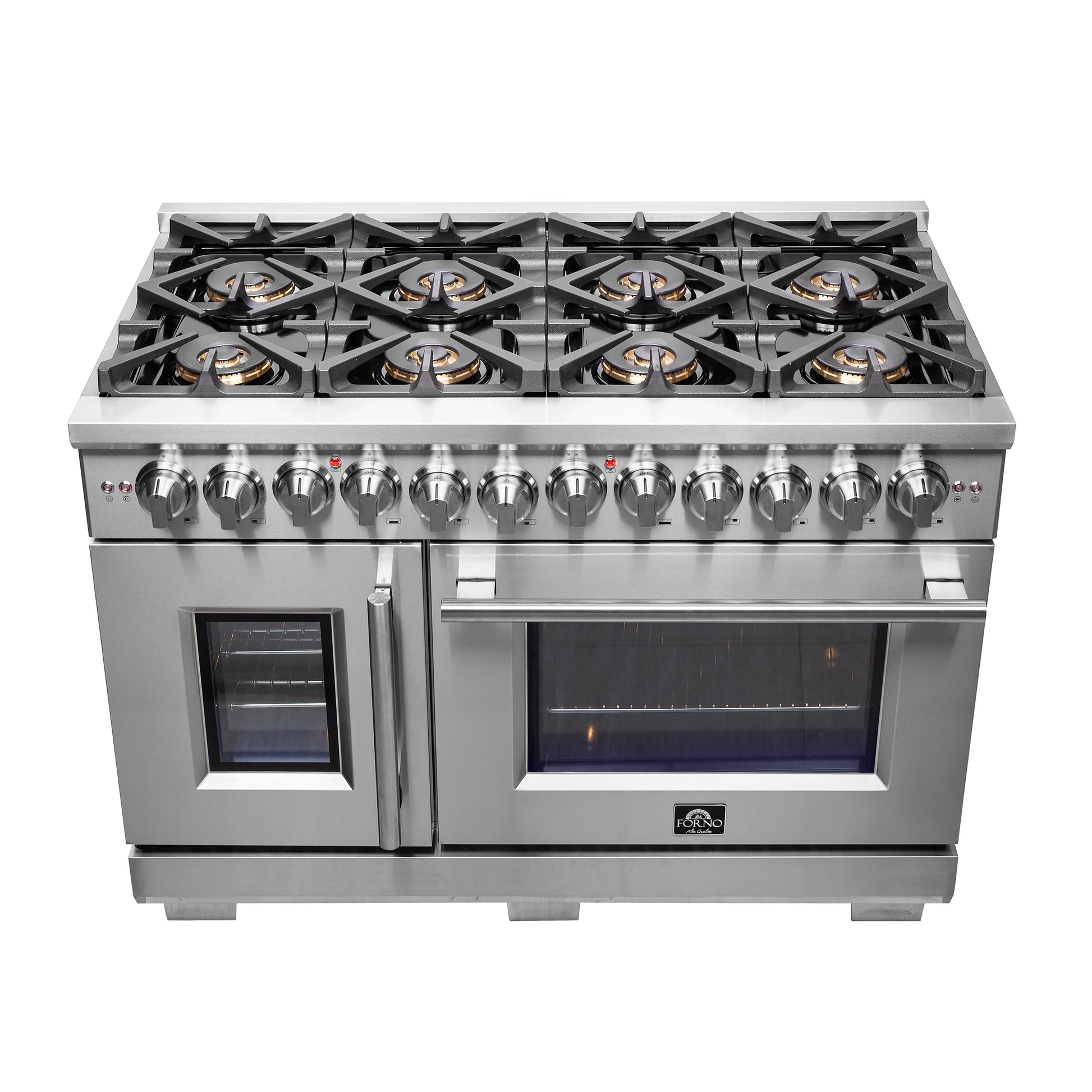 Forno Capriasca 48-Inch Freestanding French Door Dual Fuel Range, 8 Burners, True Convection Oven