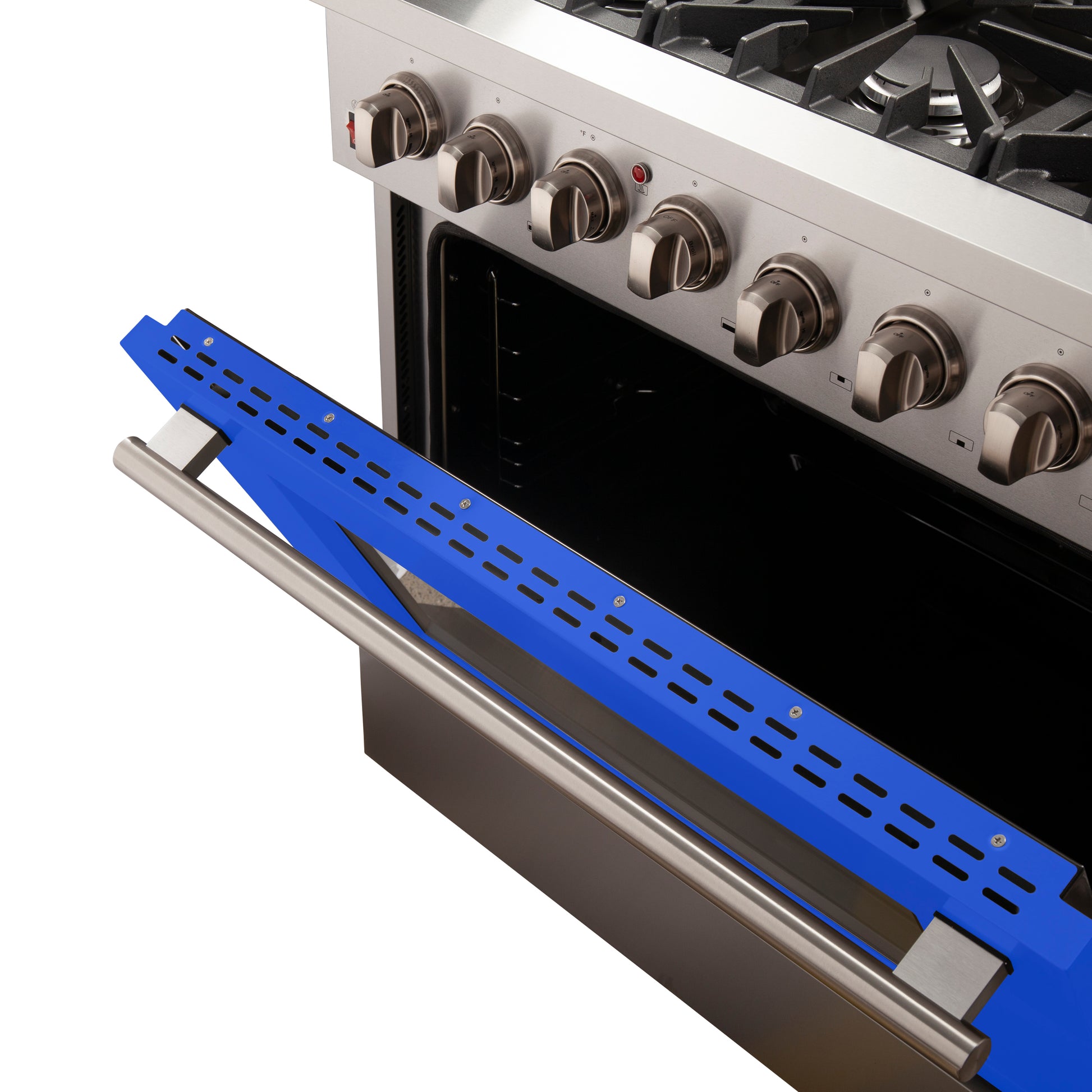 Forno Galiano 36-Inch Freestanding Dual Fuel Range, 6 Burners, Double Convection Ovens, Blue Door
