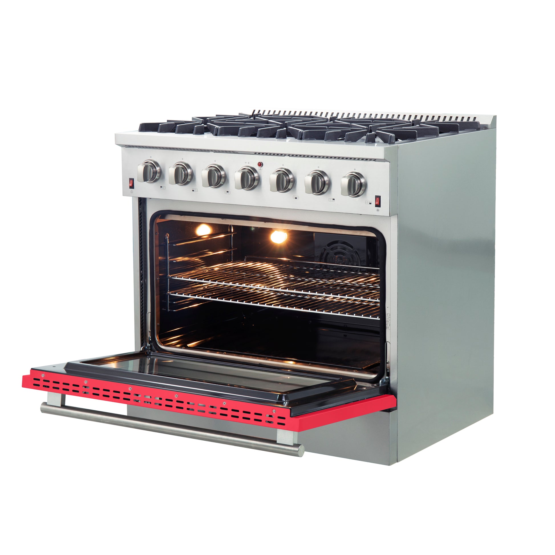 Forno Galiano 36-Inch Freestanding Gas Range, Stainless Steel, 6 Burners, Energy Efficient, Red Door