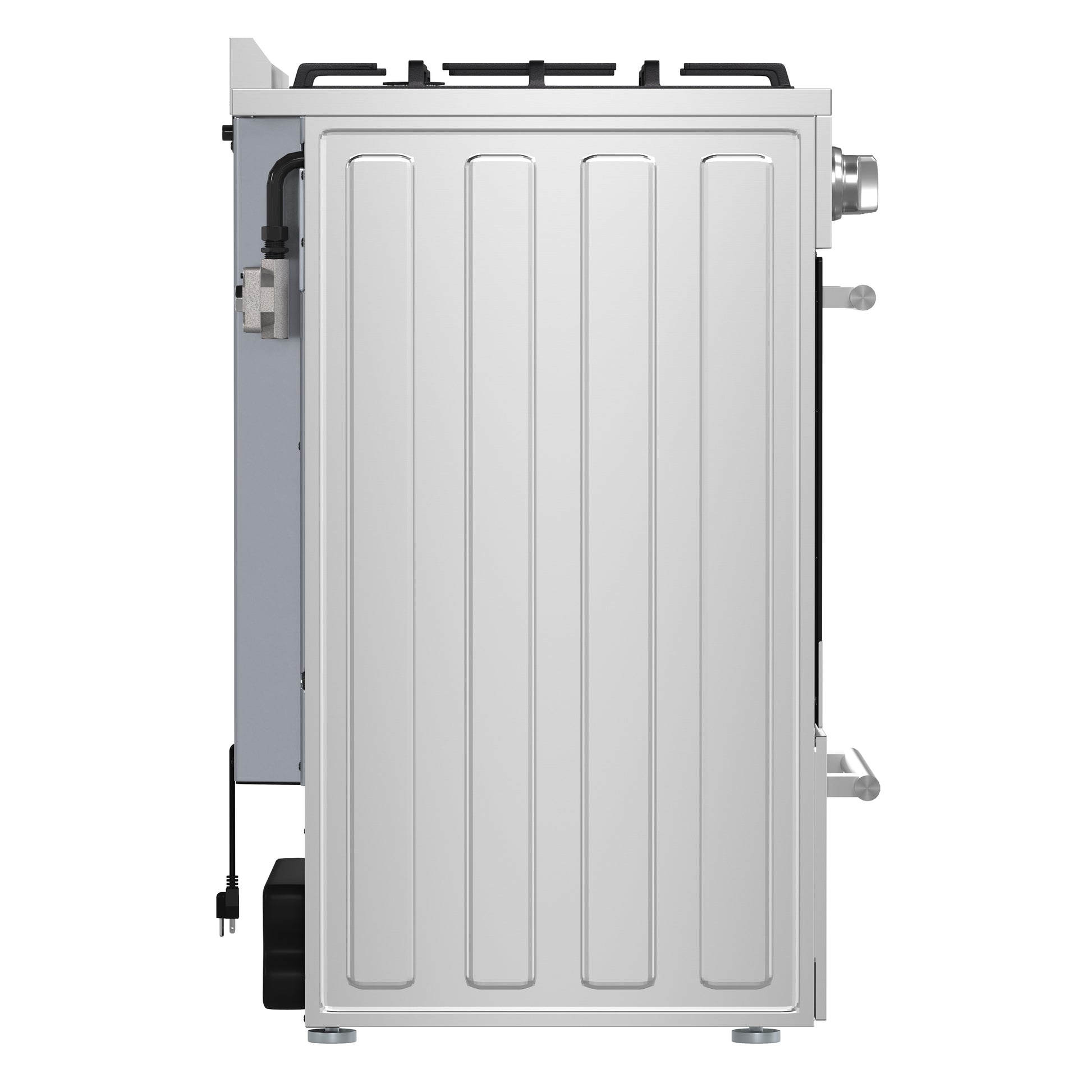The Forno Lamazze 20 Inch Alta Qualita Pro-Style Freestanding Gas Range brings professional styling and Performance into your home kitchen with its durable stainless-steel design. Cooking Surface has with 4 sealed burners with a total output of 21,200 BTU and features continuous cast iron grates. The 20 Inch oven has a capacity of 2.05 cu. ft. with a combined broil and oven output of 13,000 BTUs and Internal cooling fan. Included are 2 electroplated oven racks, LP conversion kit and power cord. Ensure precision with your cooking using the unit’s thermostat and regulator. Additionally, zinc coated metal knobs with bezel rings will maintain their beauty for years.