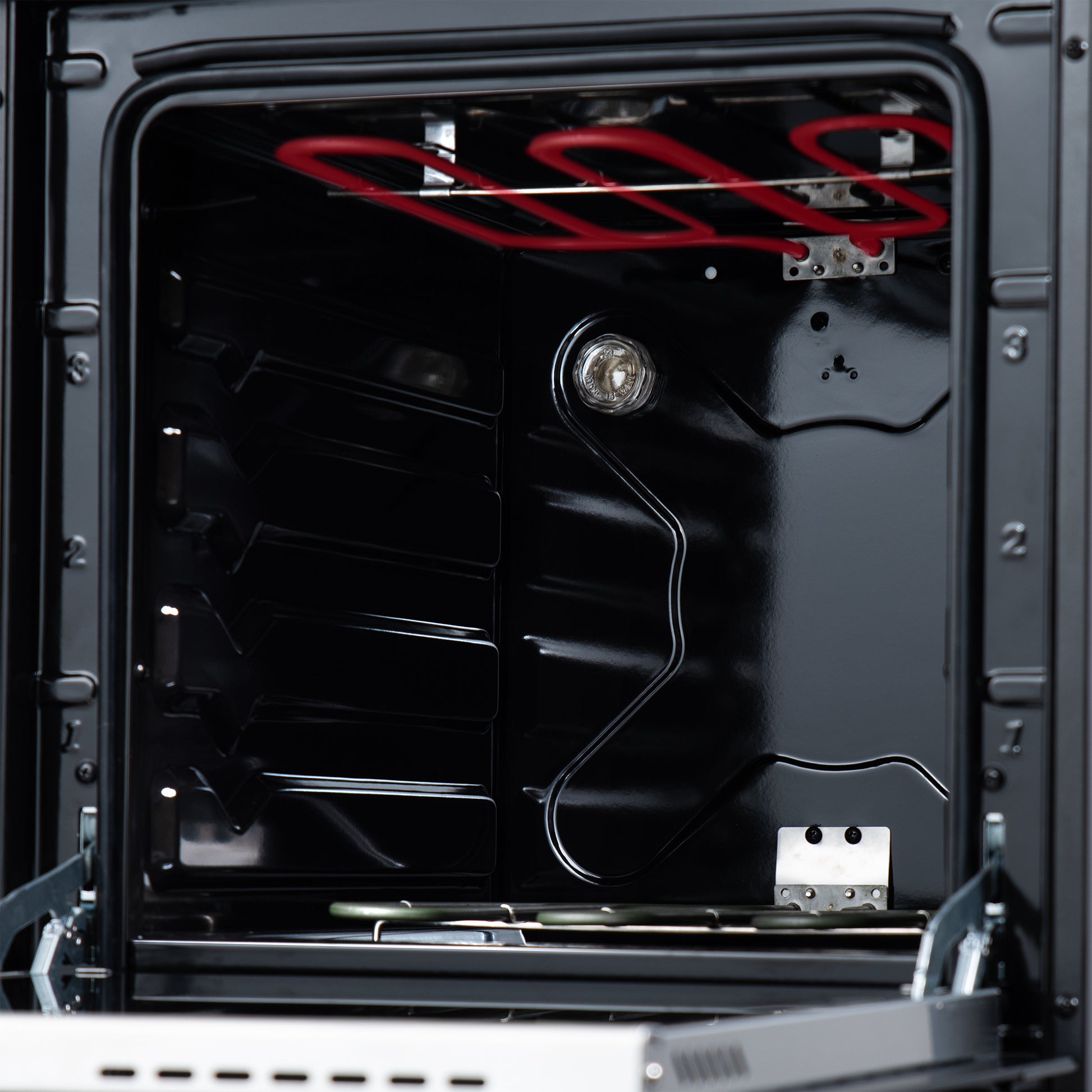 * Black Enamel Oven Interior: Durable and easy-to-clean surface resists stains and makes post-cooking cleanup simple.