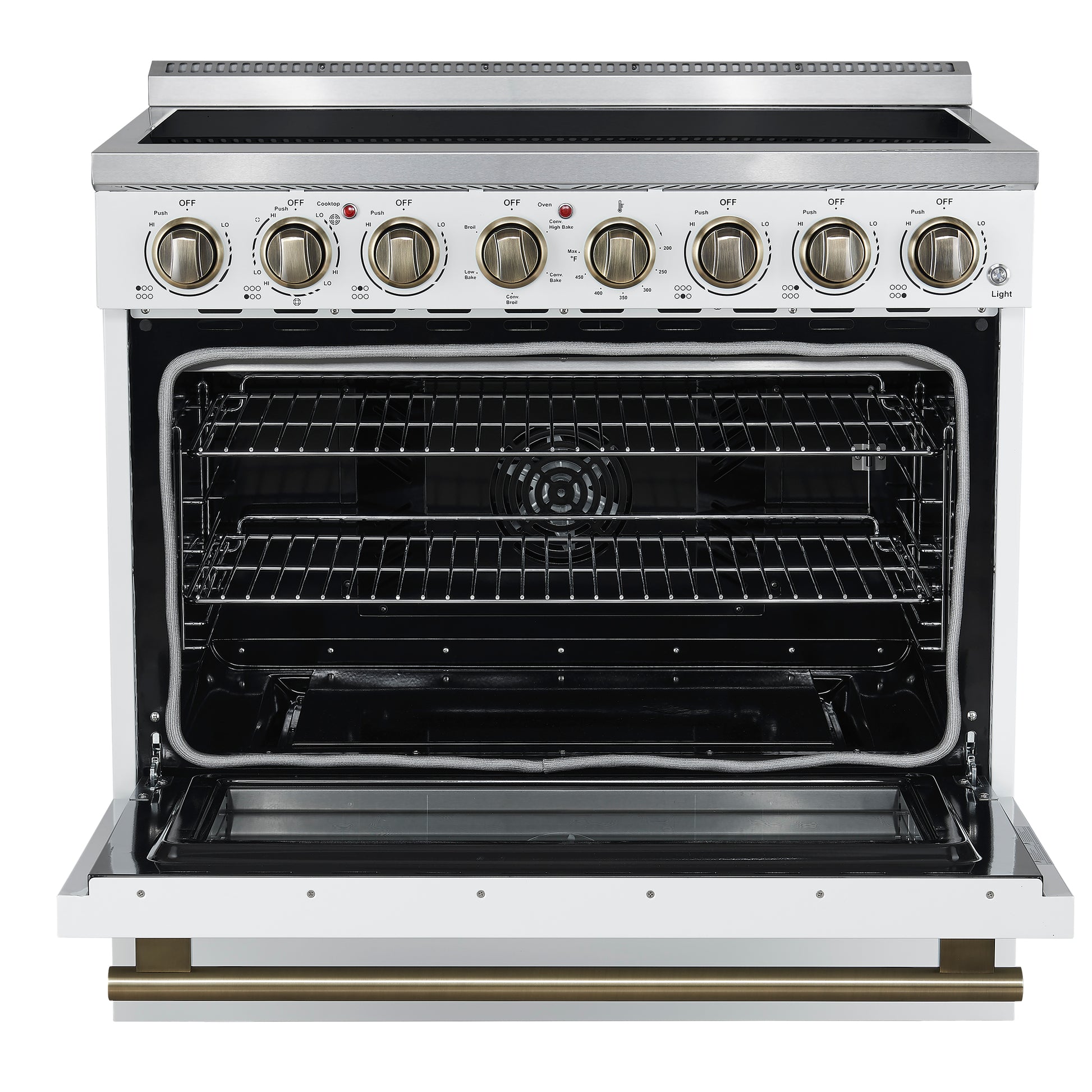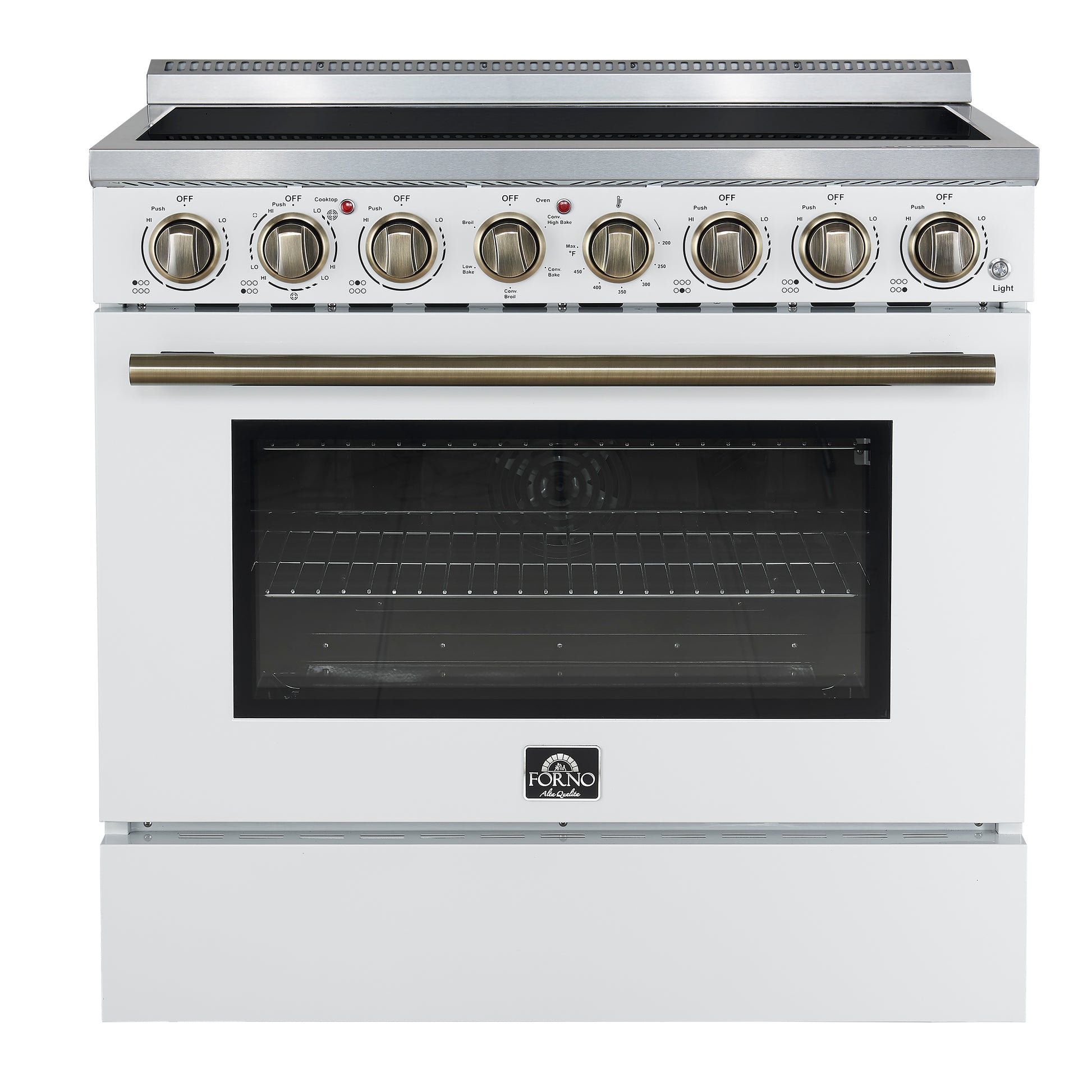 Forno Paolo 36 Inch White Freestanding Electric Range, Stainless Steel, 5.44 cu.ft, True Convection Oven, Energy Efficient