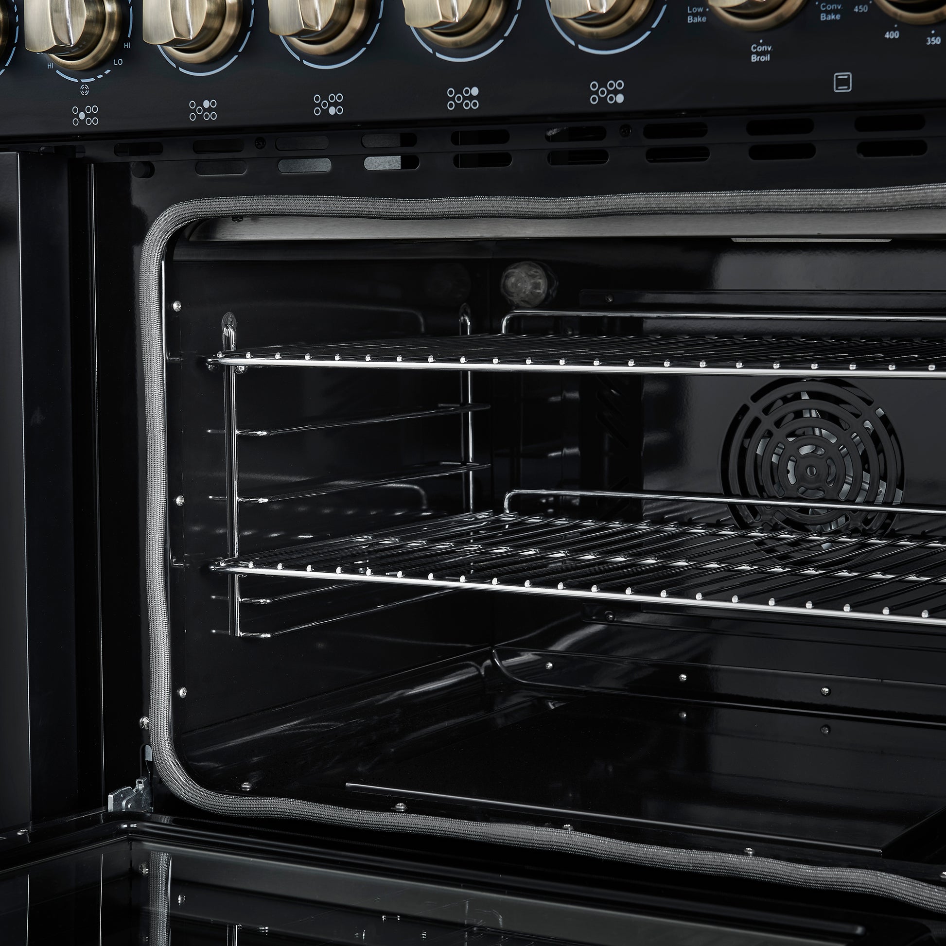 Forno Paolo 48 Inch Freestanding Electric Range in Black with Antique Brass, 6.7 cu.ft, True Convection Oven, Energy Efficient
