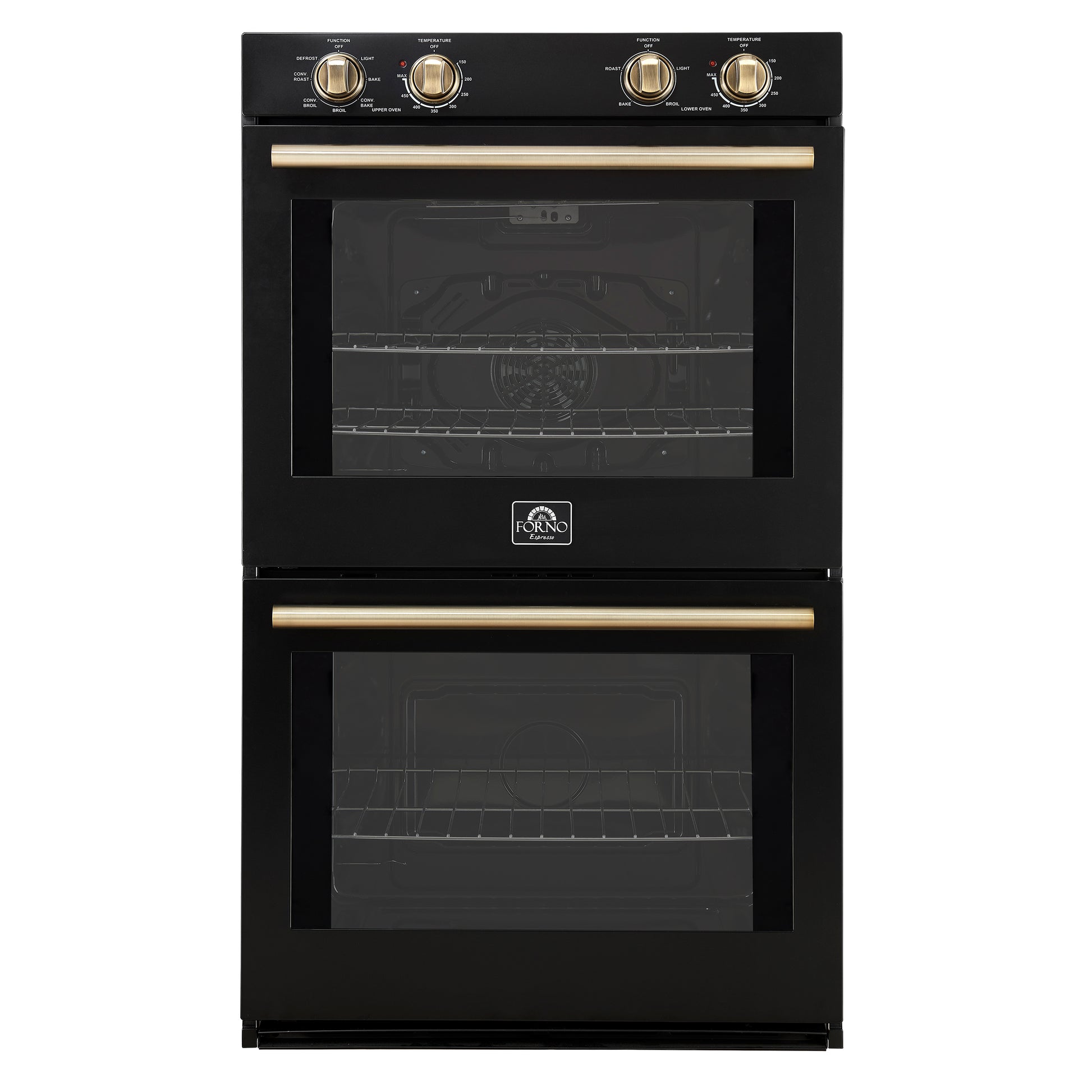 Forno Vomero 30-Inch Double Wall Oven, Black, 10 cu.ft Total Capacity, 7100W Convection, Mechanical Controls, Manuel Steam Clean