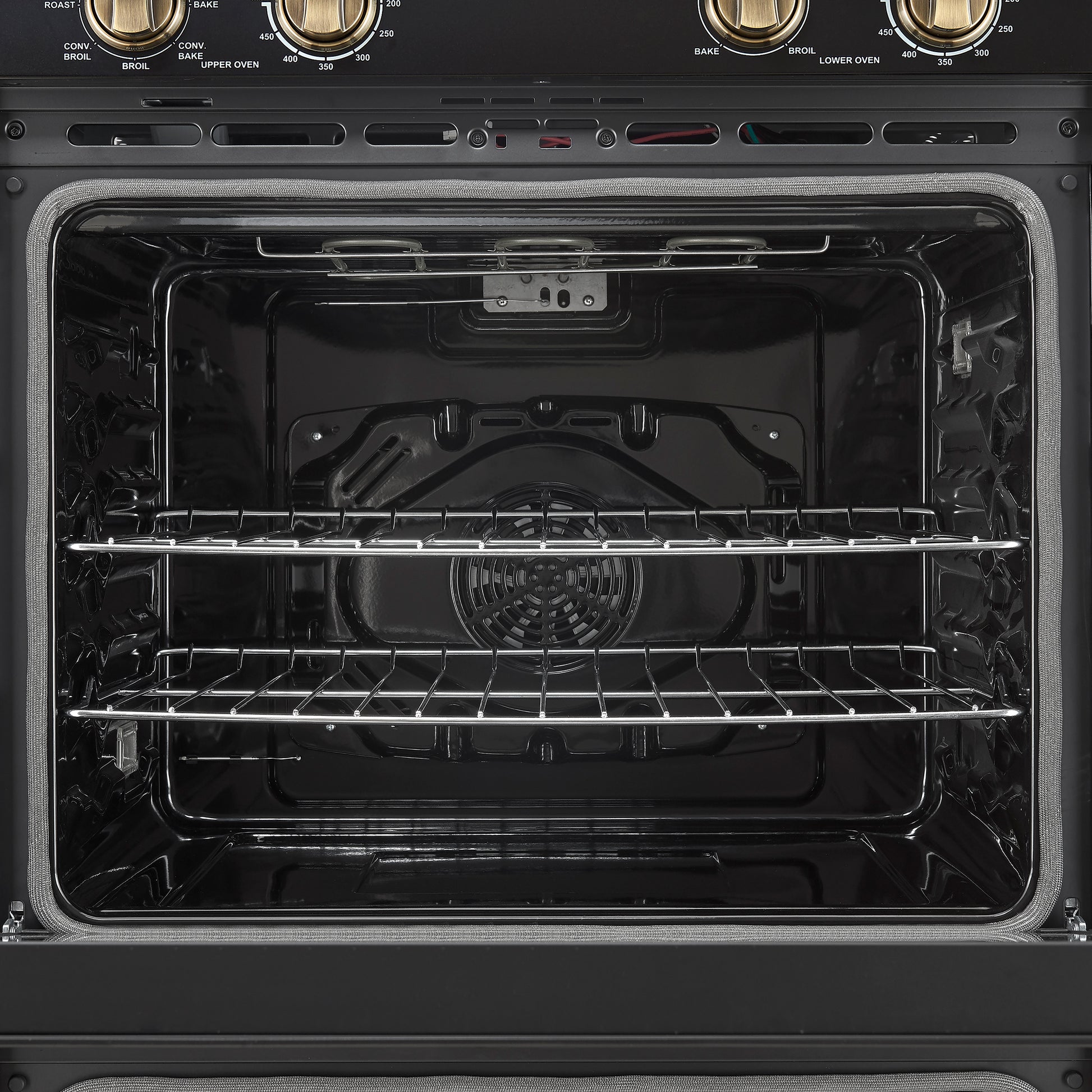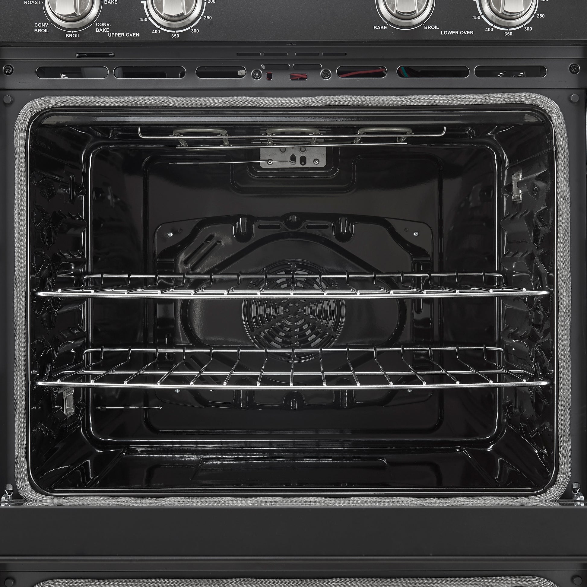 * Upper oven is equipped with a powerful 2000W broiler element, a 1500W bake heating element, and a 50W convection fan, ensuring quick, even heating for perfect cooking results.