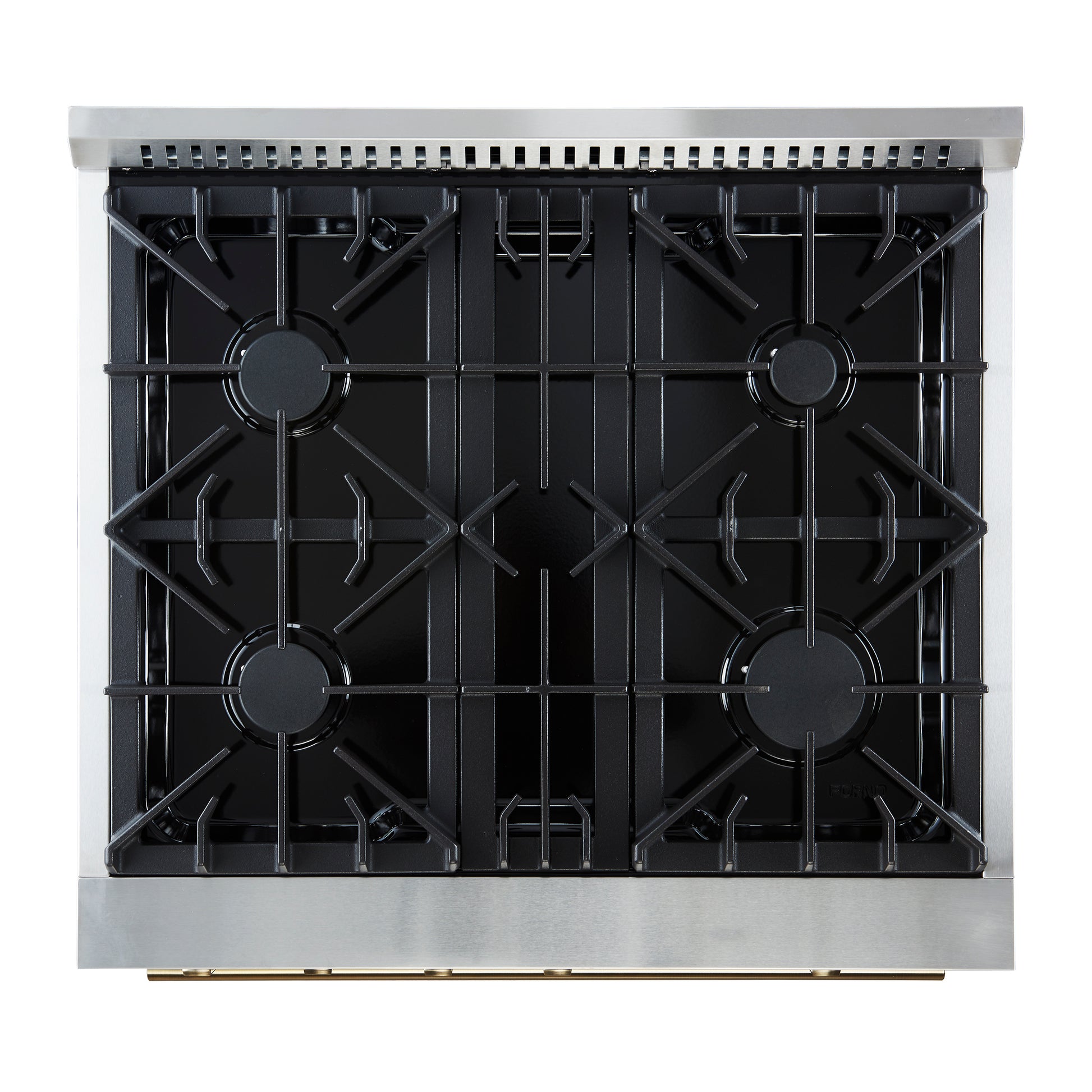 Marco 30-inch Gas Range Black & Antique Brass Design, 4 Burners 37,000 BTU, 4.32 cu.ft. Convection Oven